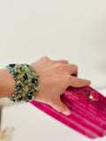 This beautiful Turquoise bracelet stack is handcrafted with intricate detailing and features the boho chic stones and beads. Two stretchable beaded buttons and loops form adjustable length closure, giving free size options.