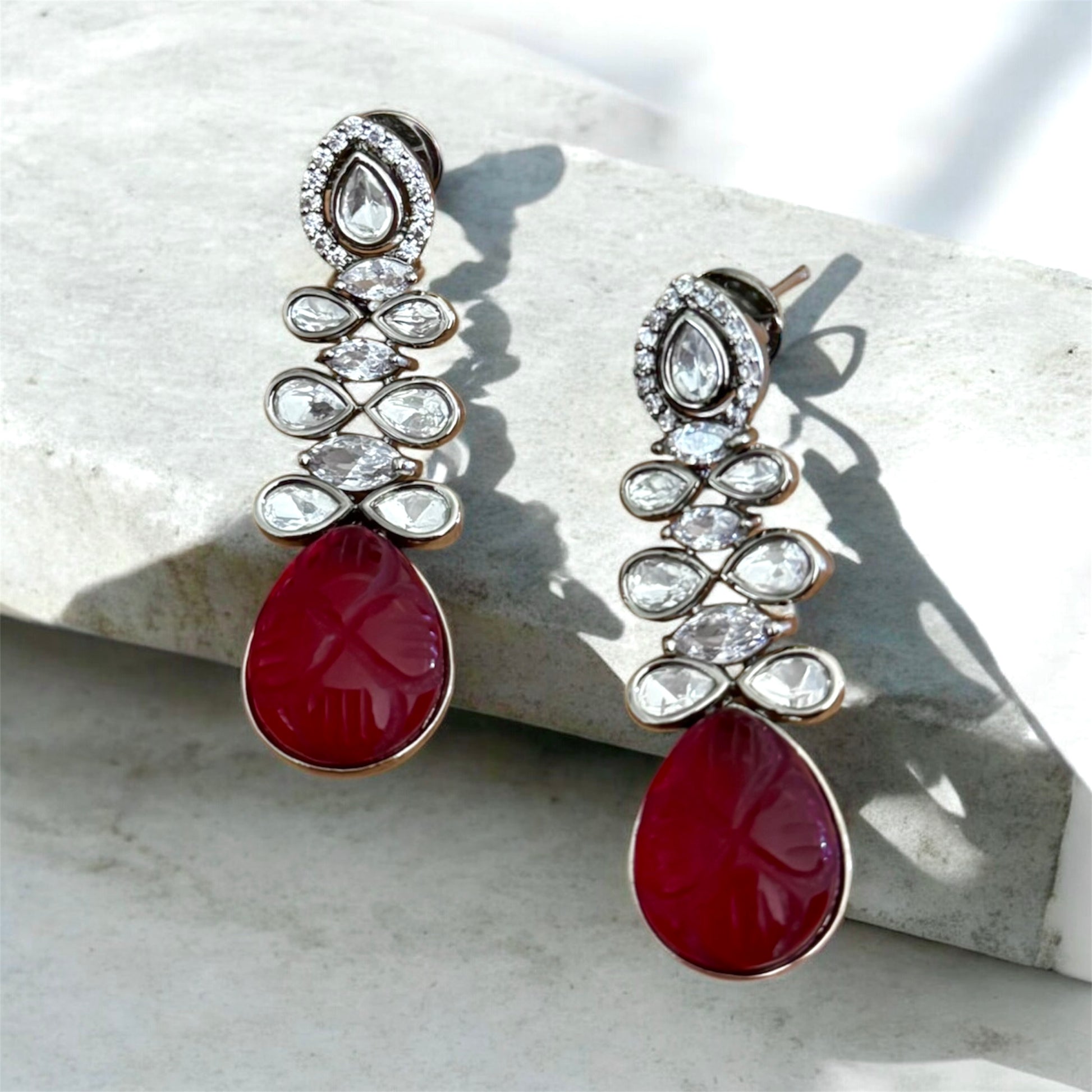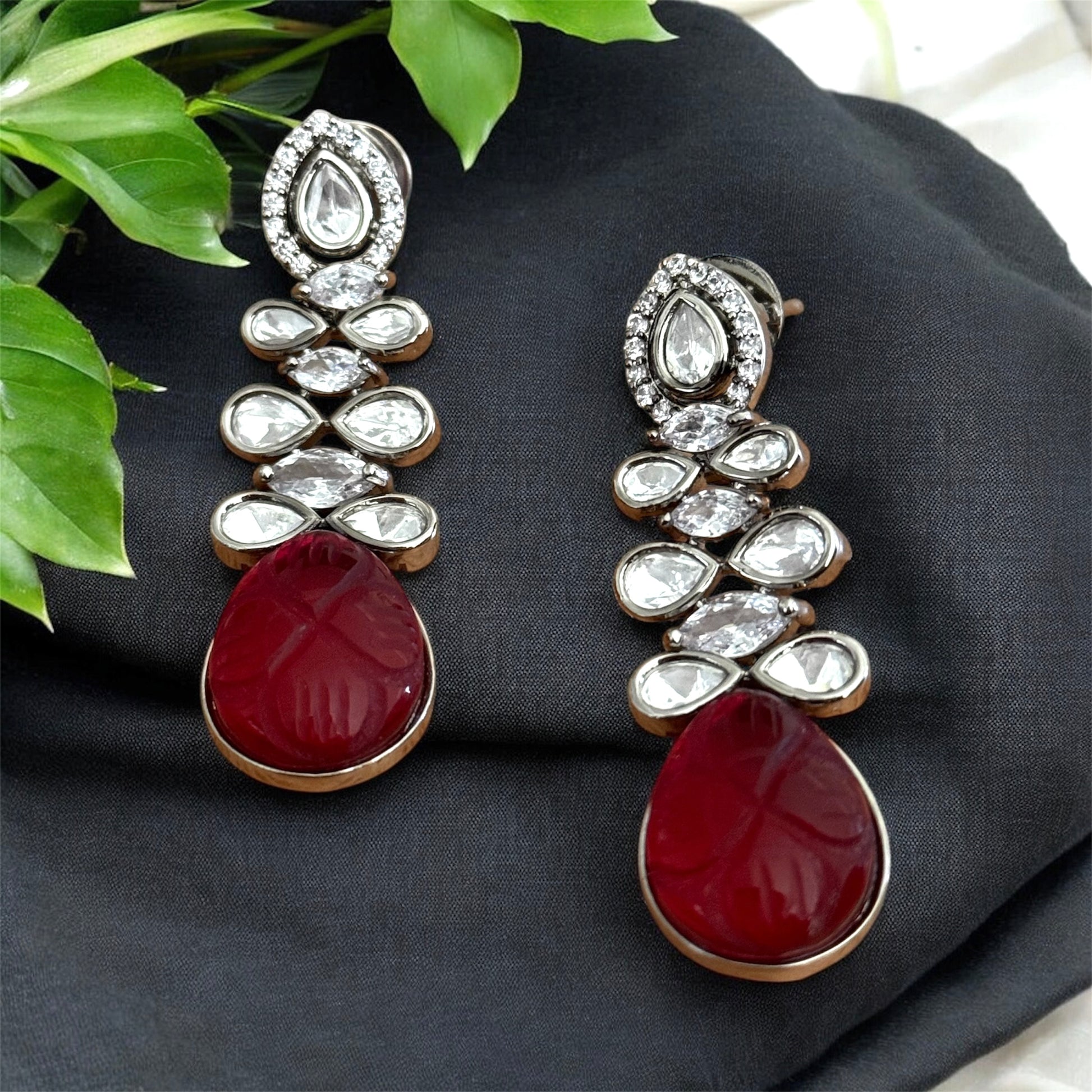 Style these handcrafted luxurious long drop and dangle artisanal earrings up for a fun night out or make them an essential part of your daily line up. These deep red stone earrings are made in the highest quality, ensuring a timeless and sophisticated lightweight feel. With every purchase, you're not just buying a pair of earrings; you're investing in yourself and embracing your unique identity.