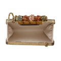 Material: 14k gold electroplated brass frame, mother of pearl exterior with natural stones, luxurious suede lining interior