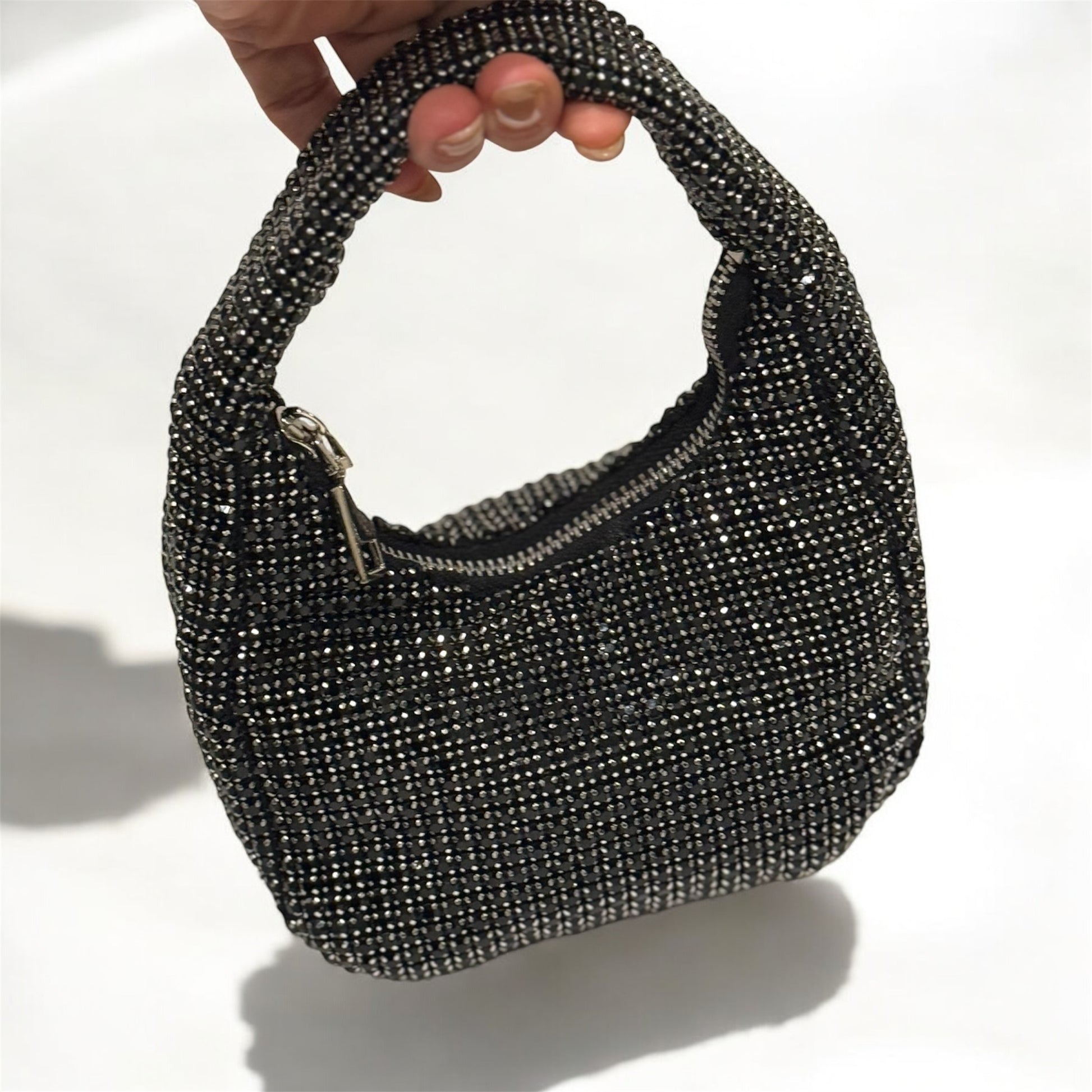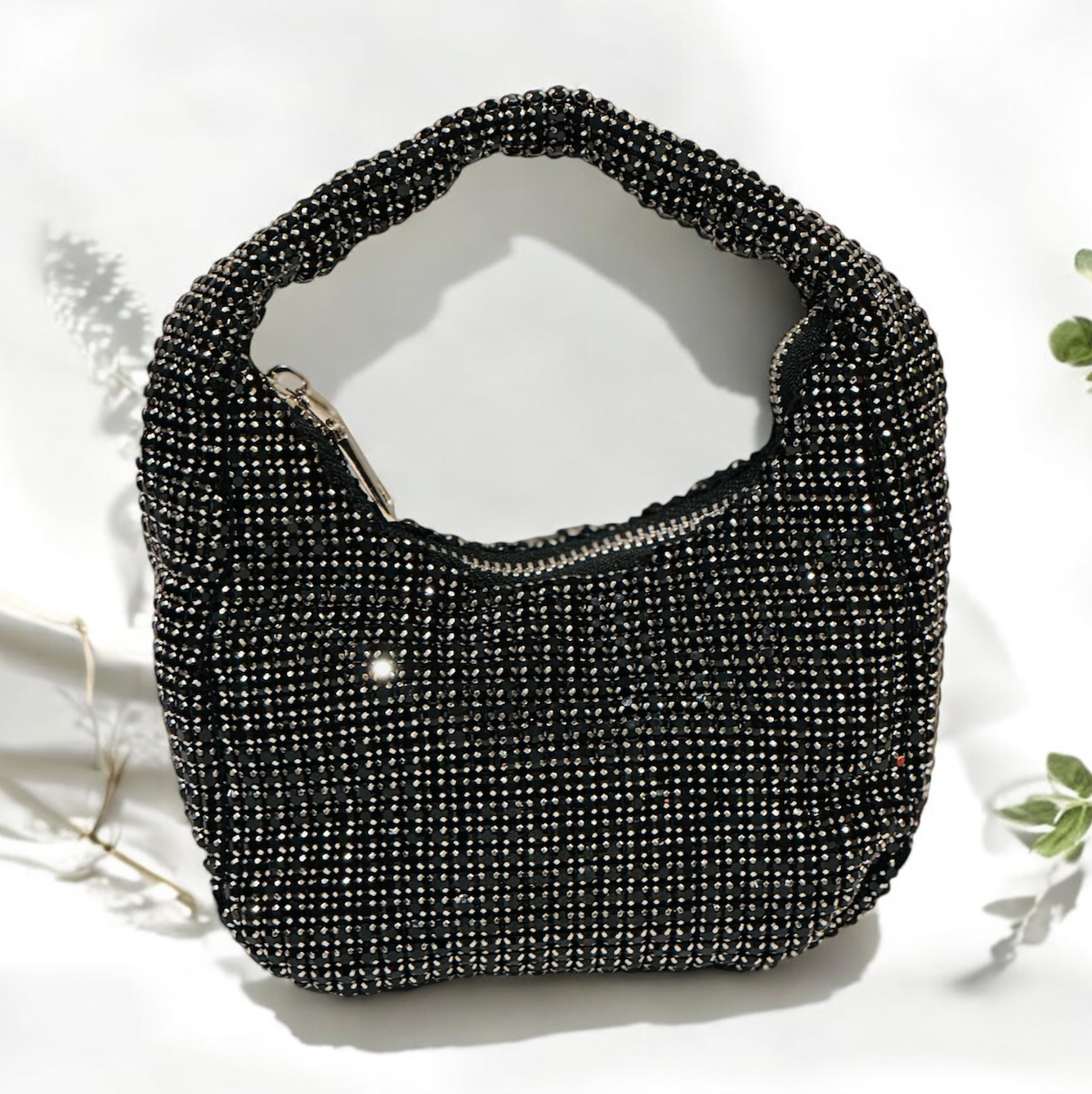 This Mini Sparkling Rhinestone Evening Clutch Bag is perfect to add a stylish blend of sophistication and glamour. The black bag is an elegant and classic addition to a day-night look. It can easily fit your phone and other items.